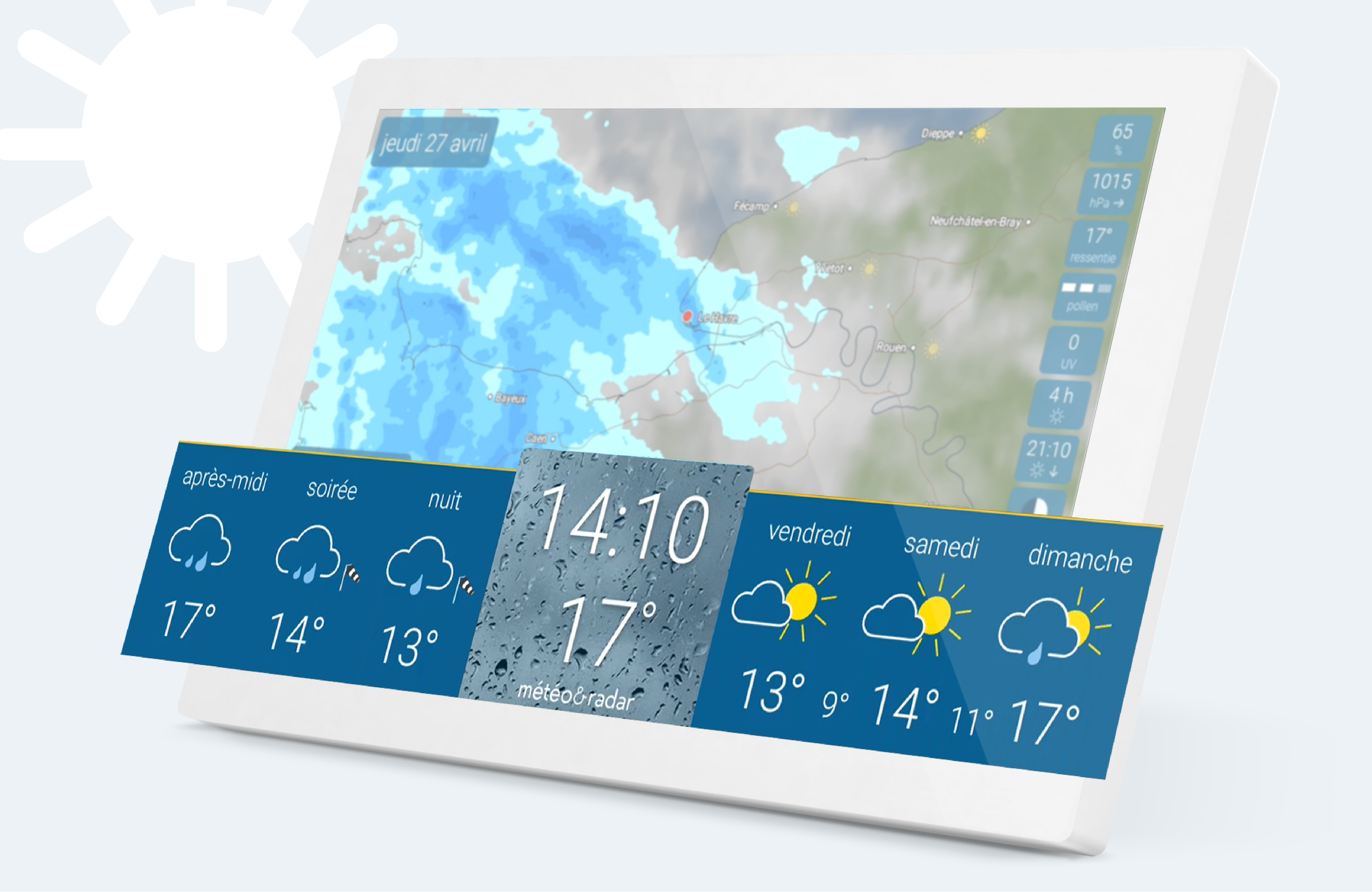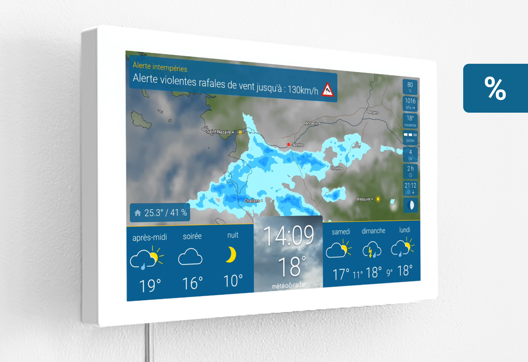 - La météo à portée de vue - grâce à un support mural adapté et spécialement conçu.