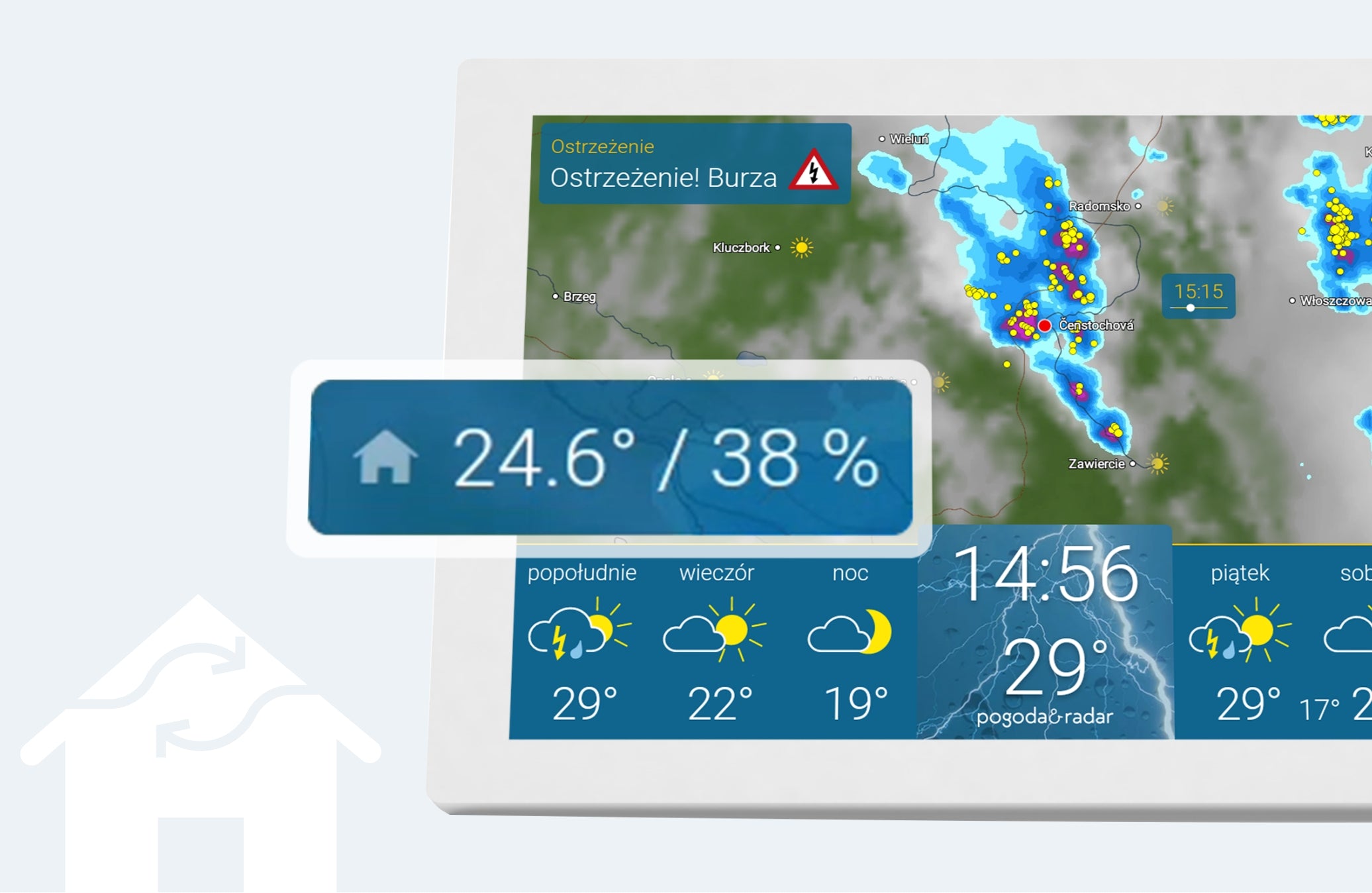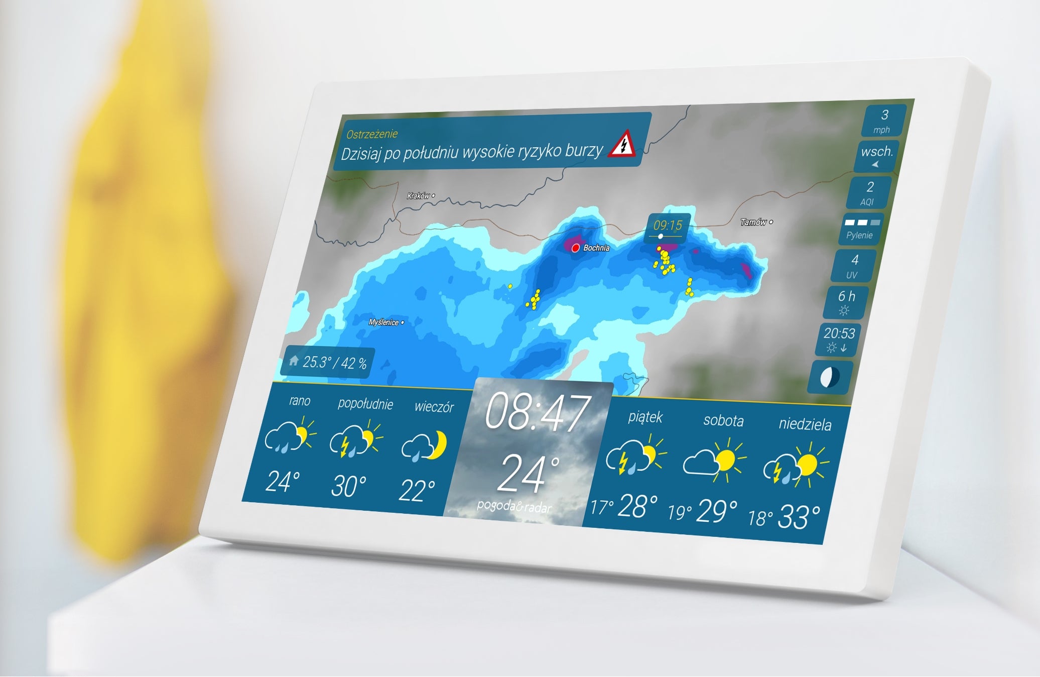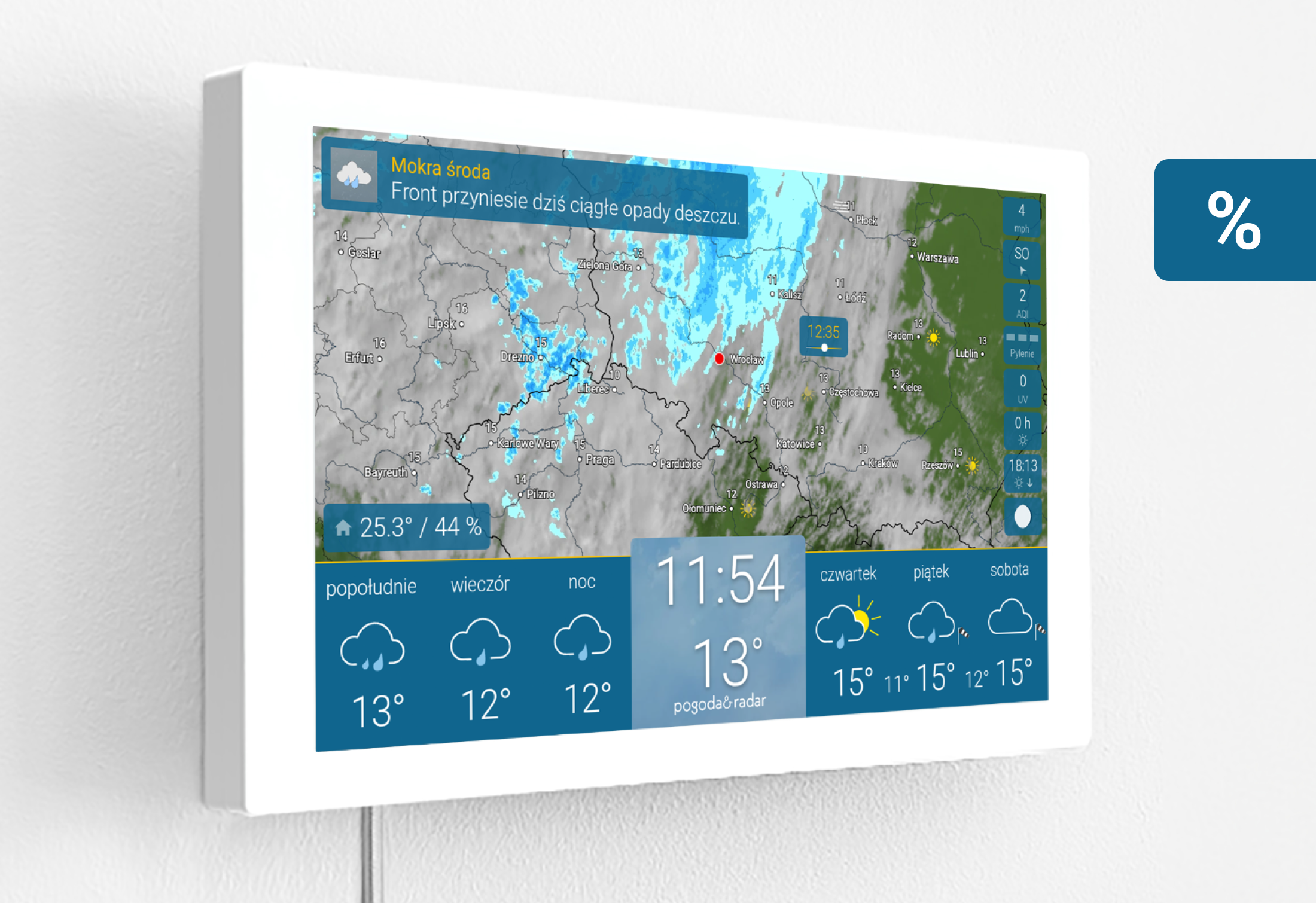 - Pogoda w zasięgu wzroku – dzięki specjalnie zaprojektowanemu uchwytowi ściennemu.