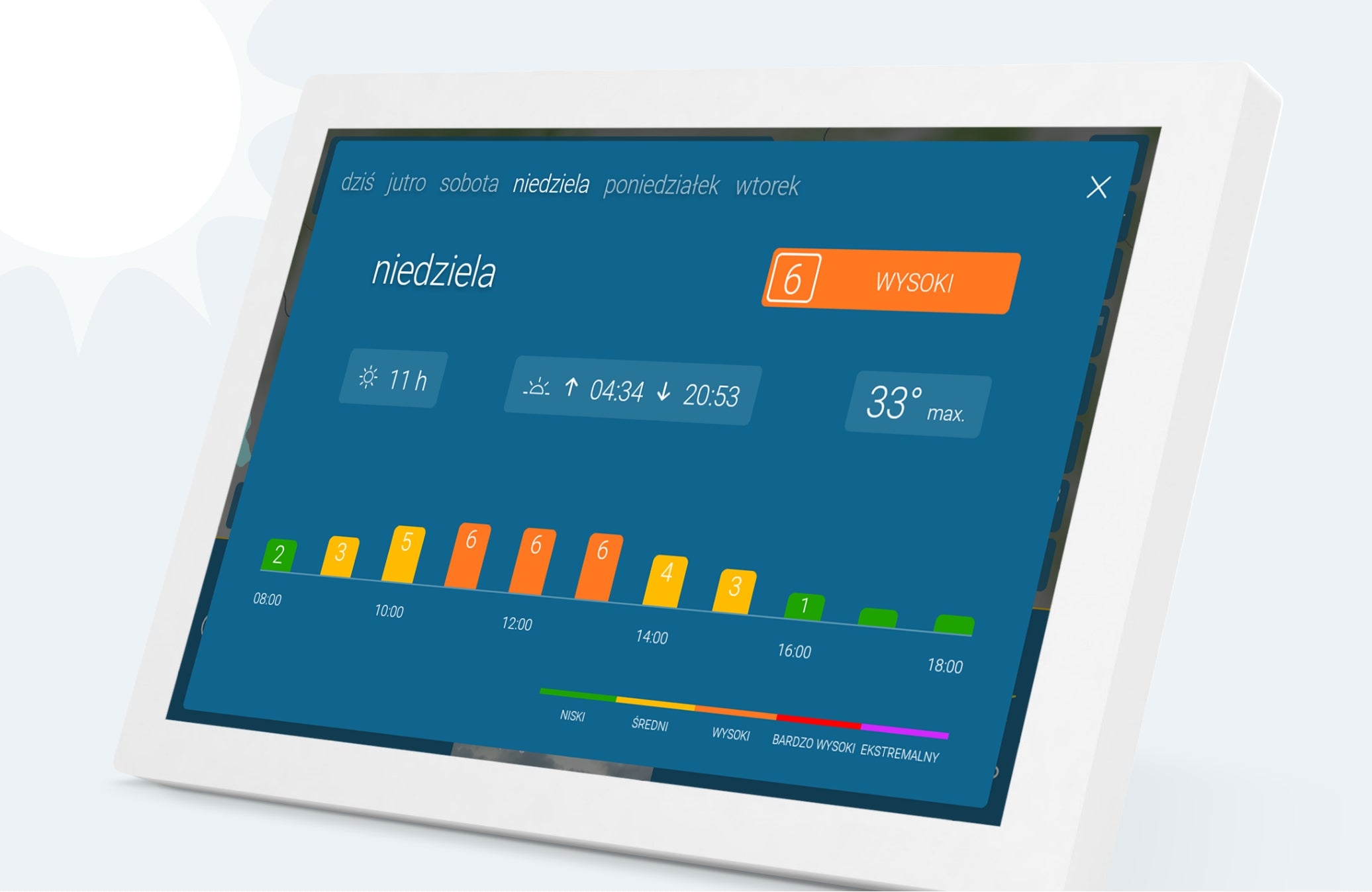 Informacje o intensywności promieniowania UV wskazują jakie środki ochronne należy podjąć obecnie i w ciągu najbliższych pięciu dni.